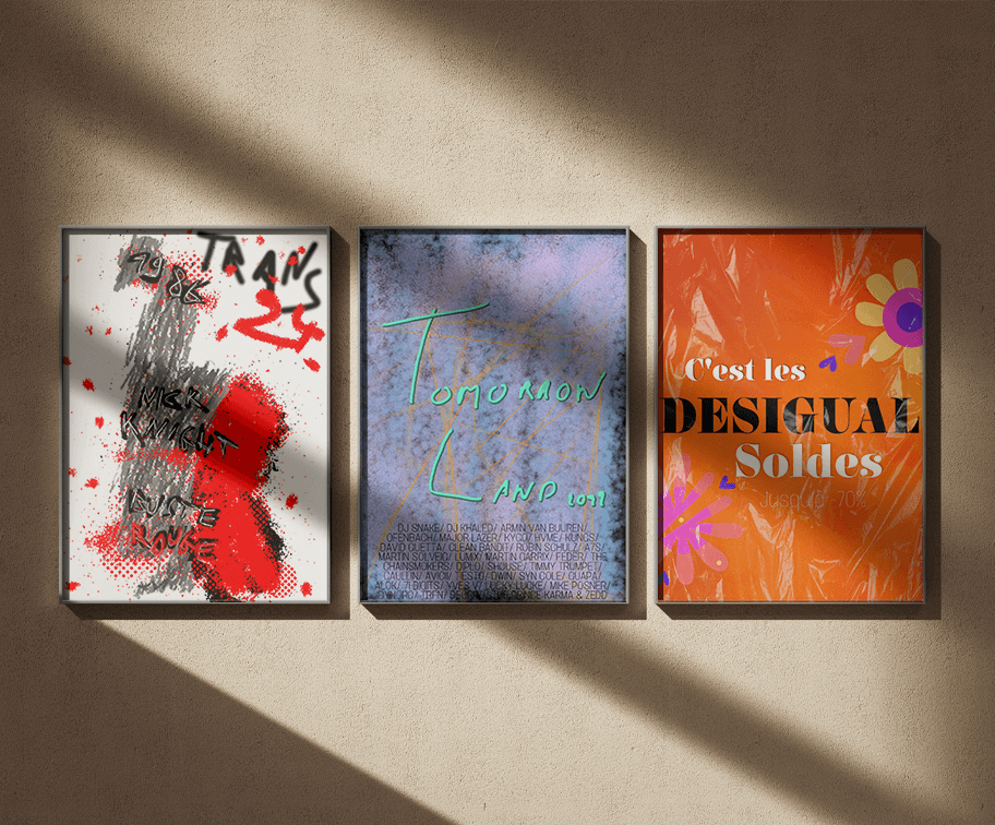 Création d'affiches et posters pour expérimenter graphiquement la typographie, le motif, ...