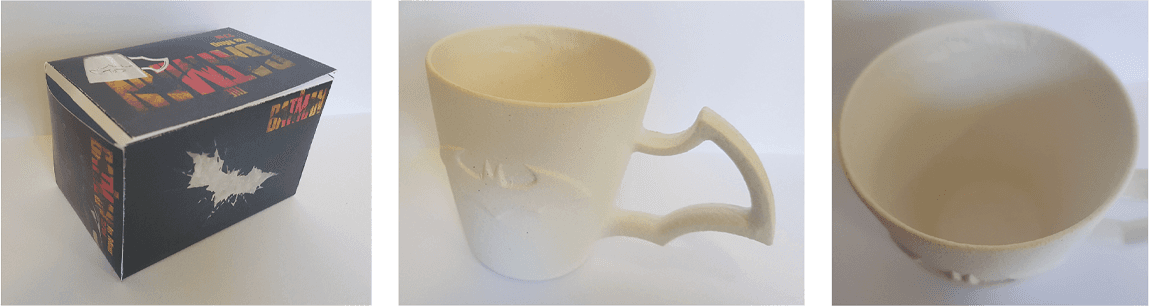 La tasse a été imprimé à partir de fécule de pomme de terre et de maïs.