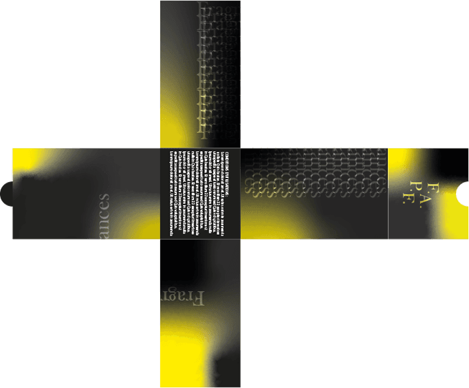 Pour amplifier les notions du chic et de l'élégance, j'ai travaillé sur un fond en bichromie (noir et doré) qui rend l'ensemble plus mystérieux.