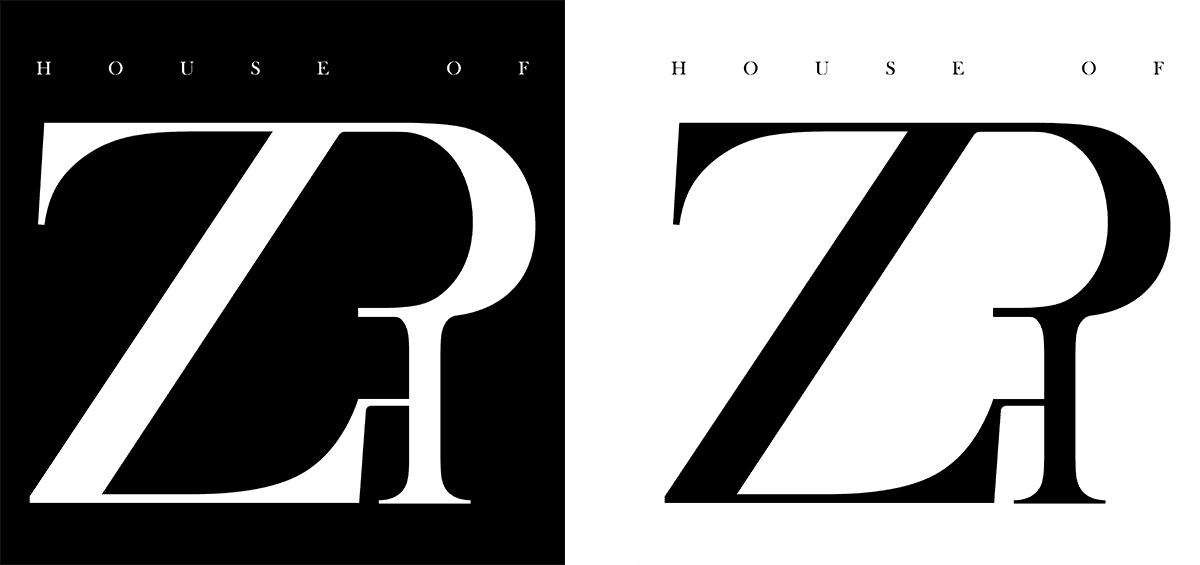 Mes références sont les logotypes de Dior et d'Yves Saint Laurent, car pour représenter l'élégance et le chic il n'y a rien de mieux qu'un monogramme entremêlant les lettres Z, P et H avec une typographie à empattements un classique dans le mon du design de mode.
