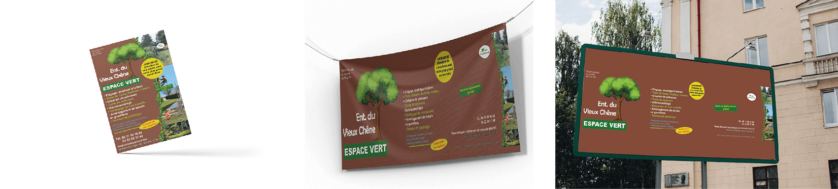 Création d'un flyer et de ses déclinaisons en bâche et en affiche pour Entreprise du Vieux-Chêne.
